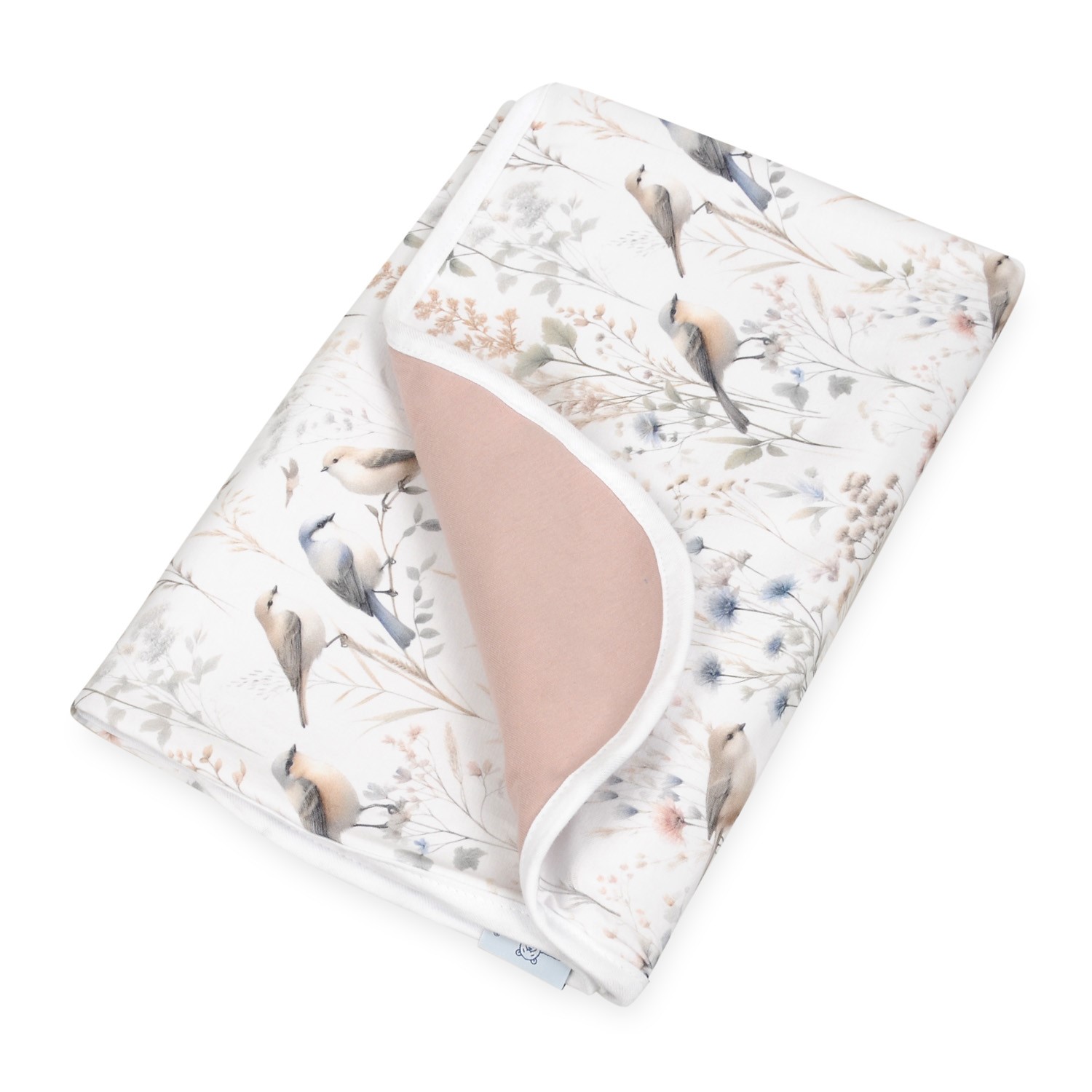 Kocyk dziecięcy INES, roz.75x100cm materiał: JERSEY 100% bawełna- gruby interlock obszyty lamówką, WZÓR Ptaszki